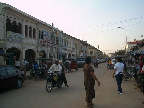 這裡算是柬埔寨的閙區,不過只有大馬路有鋪柏油,這邊郤沒有,不知是不是在整修,可以看到很多背包客都在街上晃來晃去,街道上一邊是有裝潢的店面,一邊是搭棚子像菜市場的攤位.很妙.