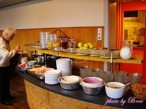 早餐普普通通.老闆娘很親切.還可以讓我們寄放行李.直到我們健行回來.