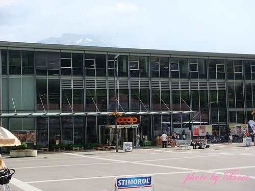 Grindelwald雖然也有COOP,可是沒有提供熱食,所以我們在Interlaken停留約一小時,採購晚餐.COOP裡面有一個機器架,上面掛了許多台有點像刷卡機的東西,我和老公覺得有點好奇,就停下來研究,沒想到有一個媽媽怕我們誤用,走過來和我們說明,那機器是可以放便結帳用的.先把要買的東西一邊刷一邊放入推車,到了櫃台,就可以直接算帳了,不用再一個一個刷,國外真是先進丫.