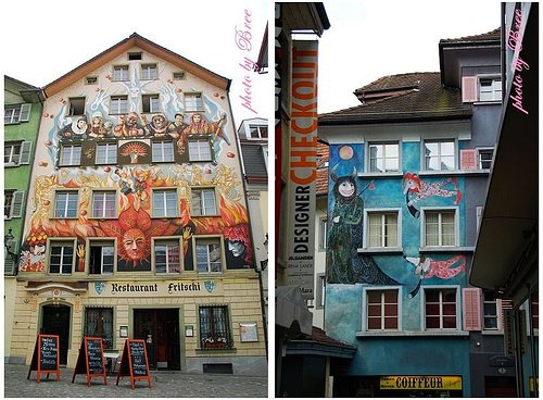 橋上有描繪瑞士歷史故事,瑞森的守護聖人的小角形版晝裝飾.